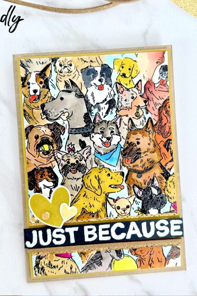 I had so much fun crafting live on my Facebook Friday the other night and I am bit late sharing this post with you after a busy weekend celebrating my younger sister’s University graduation (stay tuned for a crafty share from that celebration!). On Friday I had a blast creating this background stamp easel card using the new Doggone Friendly…