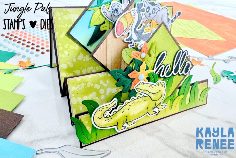 I am loving my weekly check ins and Facebook lives/classes with everyone over on my Facebook Page + doing up a FREE PDF to download. It is proving to be very popular and I am loving doing them. This week I featured a Triple Diamond Stepper Card which was a blast to make! When I saw the Jungle Pals stamps…
